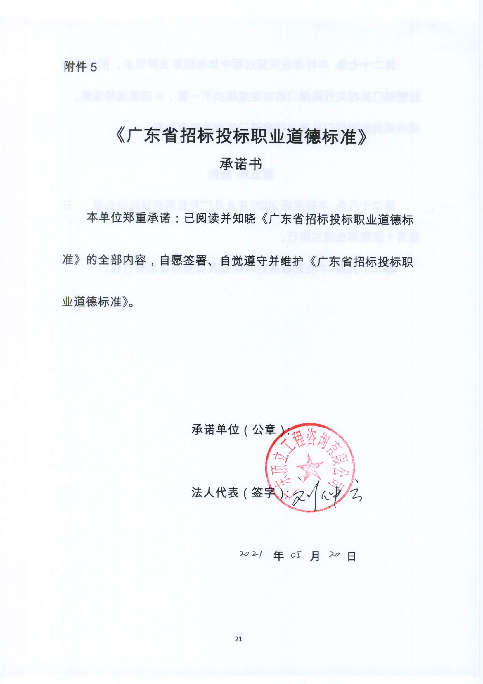 《广东省招标投标职业道德标准》承诺书